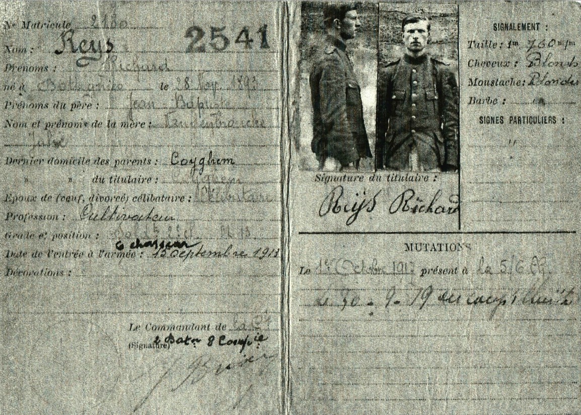 Op 15 september 1913 wordt Richard ingelijfd in het 3de Jagers te Voet dat dan gekazerneerd was in Doornik.