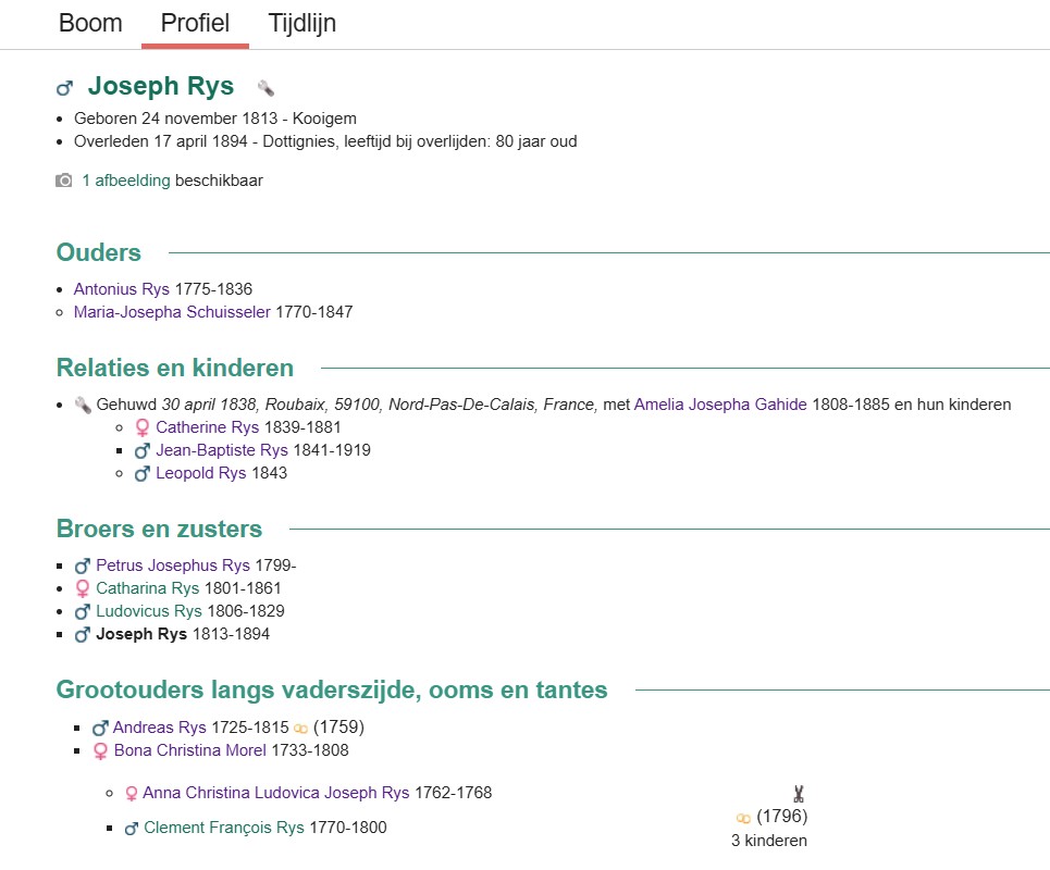 1843 28 feb. 2 jaar oud Geboorte van een broer Leopold Rys Dottignies