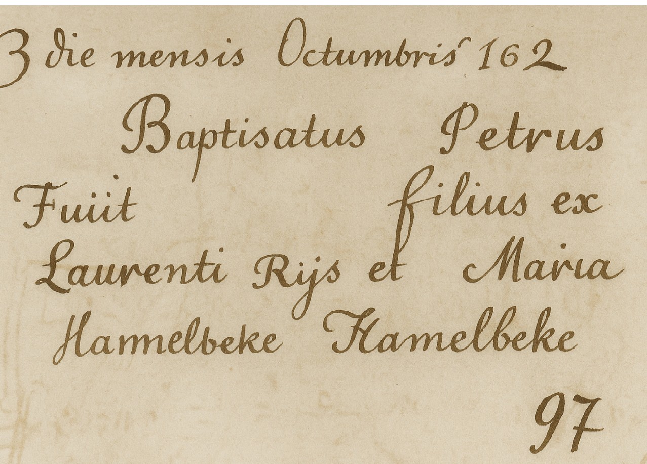 50 jaar oud 9 maart 1679. Geboorte van een zoon Petrus Rijs Dottignies